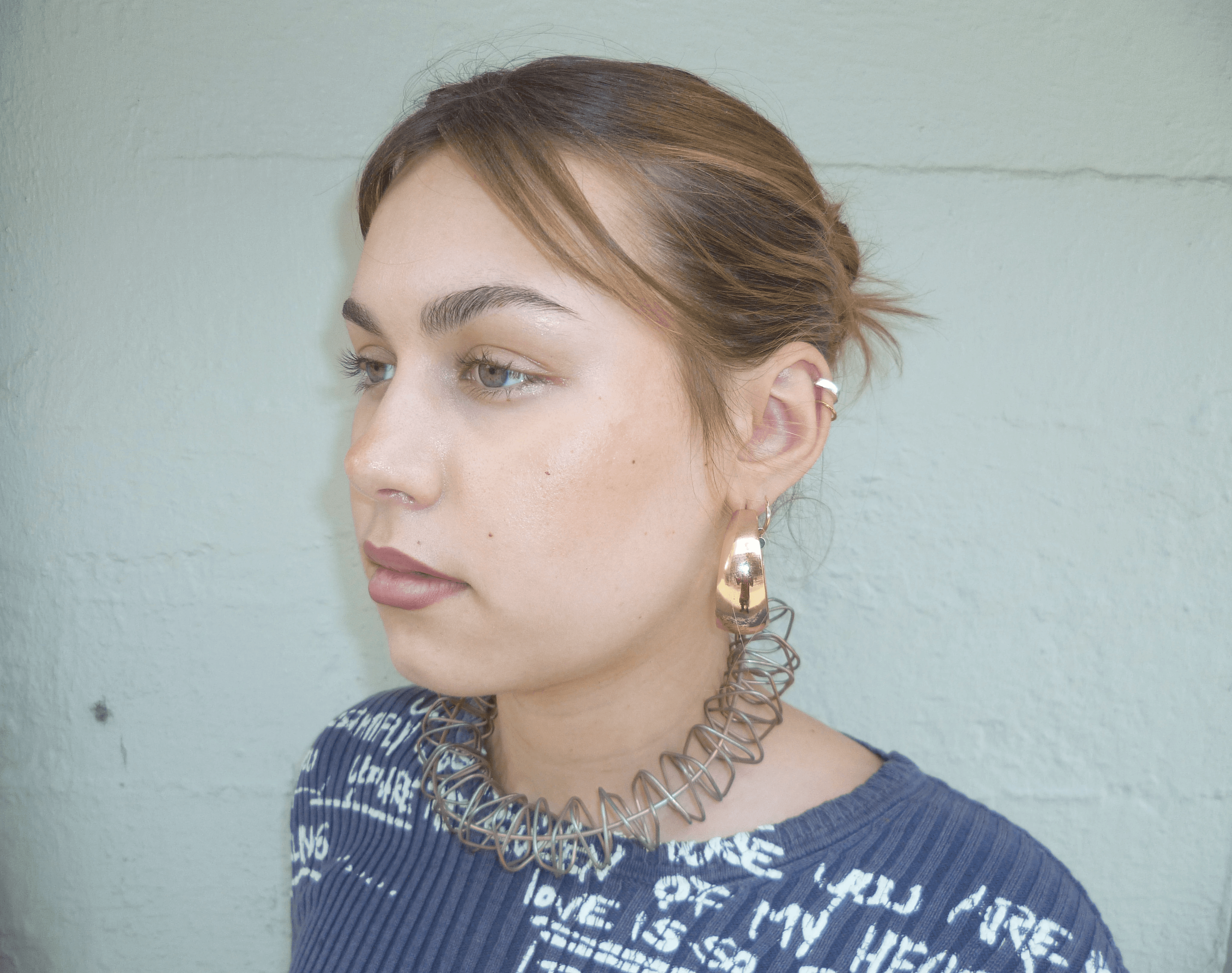 Elegantly wrapped around the wearers neck is a robust necklace. Yet, It wraps around the wearers neck snugly creating a feeling of sensuality. Made by a set of custom molds. The production method of coiling fascinated me to explore various types of wire, exploring their tensile strength and finish.