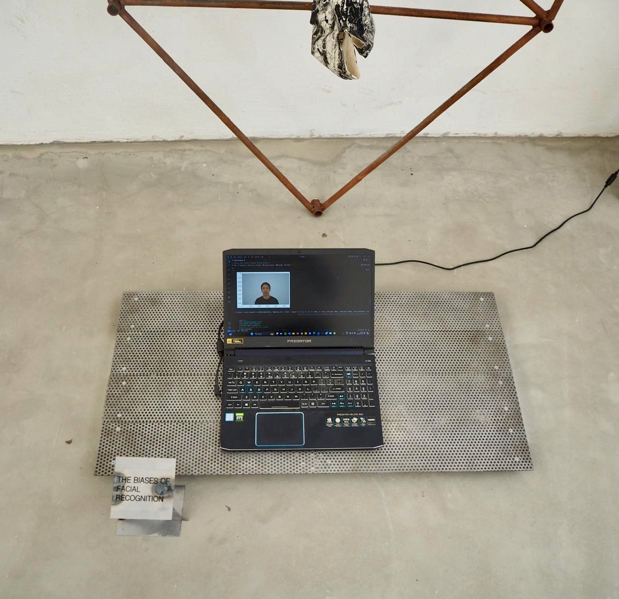 The Biases Of Facial Recognition: Patinaed metal pipes, canvas, 3d print, facial recognition software