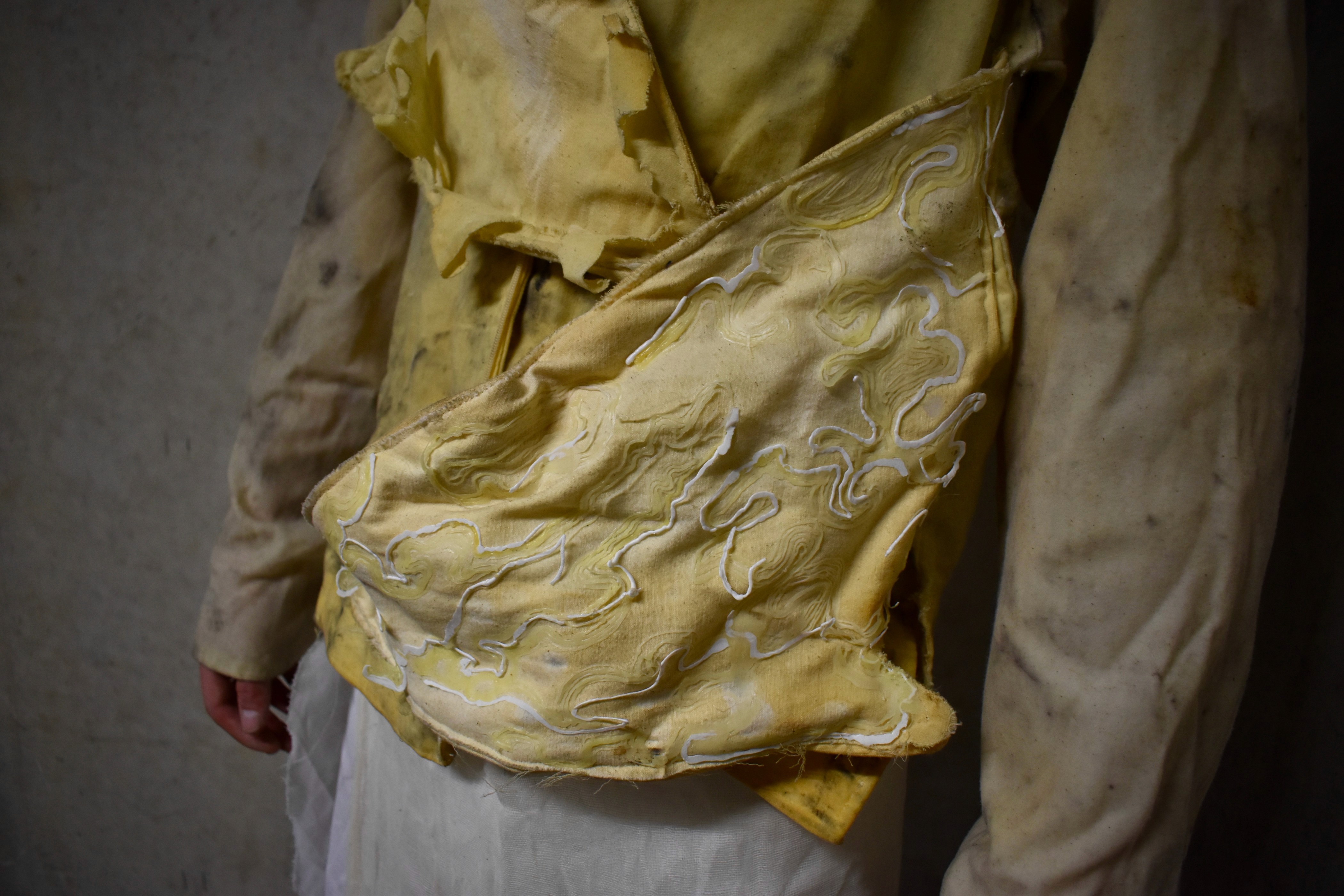 Mohobelo maxi skirt: canvas, cotton, beeswax, linseed oil, 3d print, metal.
